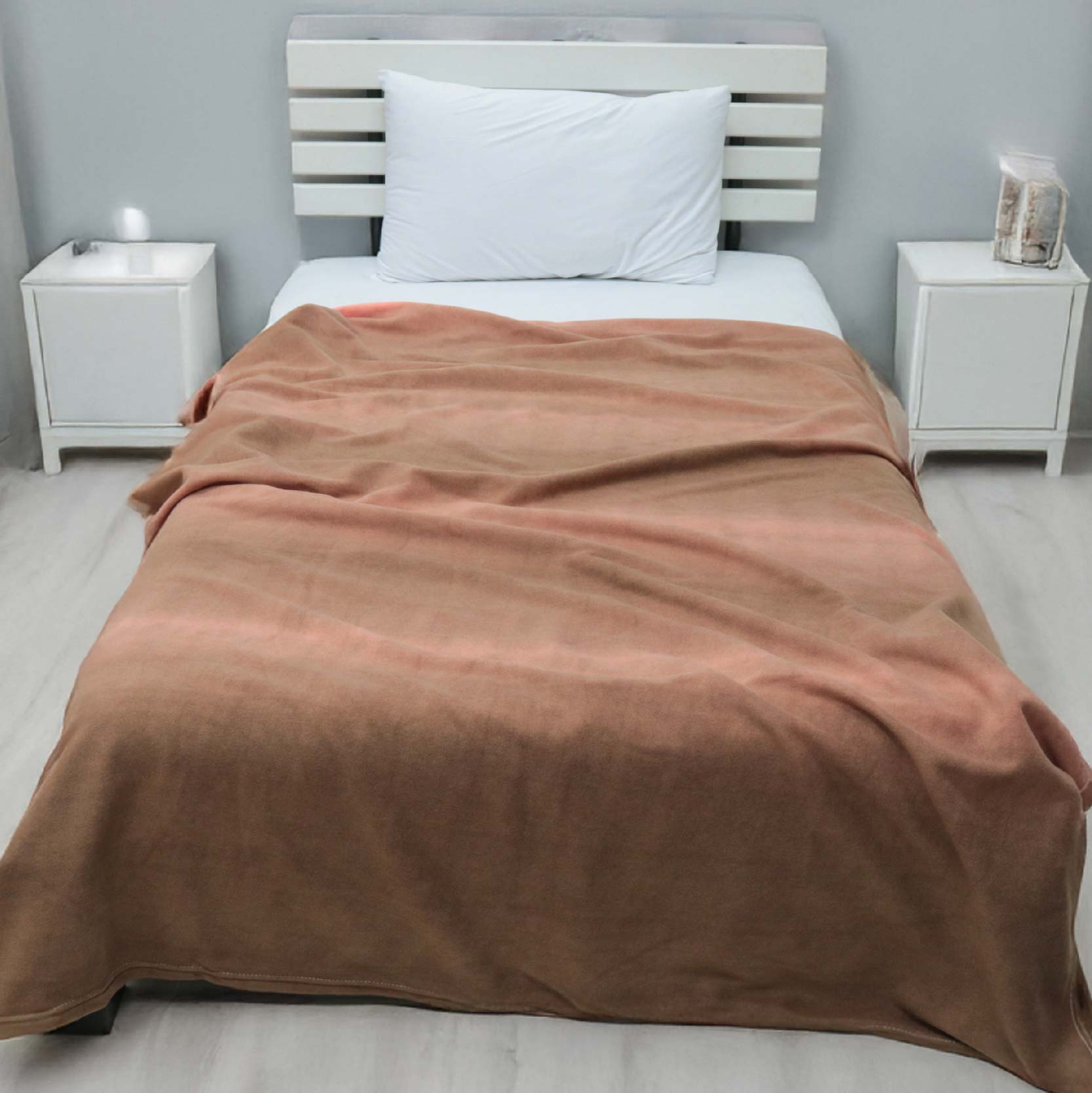 • เนื้อผ้าฟลีซพิมพ์ลายเต็มผืน ผลิตจากเส้นใยโพลีเอสเตอร์ 100% มีคุณสมบัติในการกักเก็บอุณหภูมิได้ดีมาก ทำให้ผ้าห่มชนิดนี้ “อุ่นเร็ว” ทันทีที่ห่ม